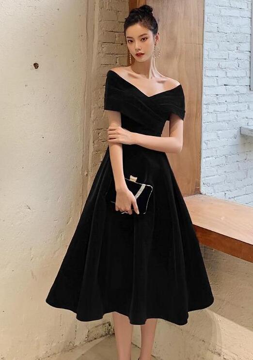 Elegant Off Shoulder Black Velvet Lace-Up Prom Dresses