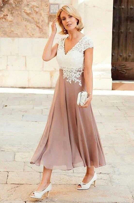 Simple Chiffon Mother of the Bride Lace Dress With Cap Sleeve