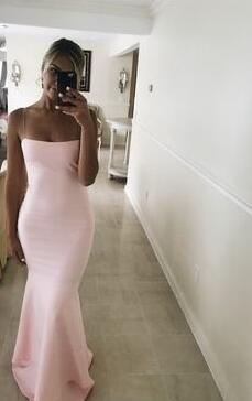 A Line Sheath Pink Stain Prom Dresses