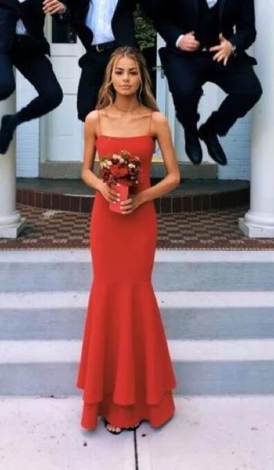 Spaghetti Straps A Line Red Sheath Prom Dress