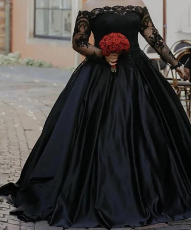 Plus Size Ball Gown Lace Long Sleeves Prom Dresses