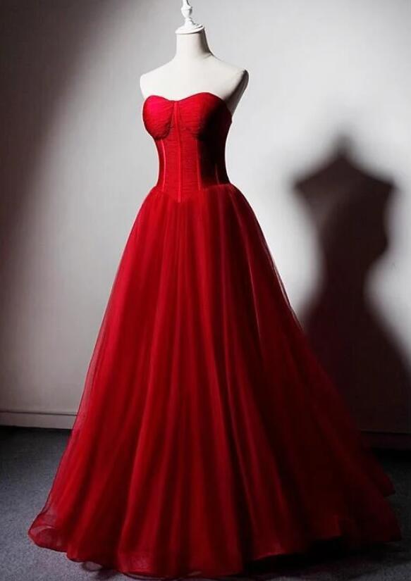 Floor Length Red Sweetheart Tulle Ball Gown Formal Dress