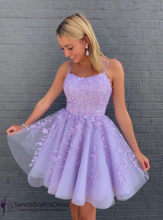 Sexy Straps Purple Short Homecoming Dress With Lace