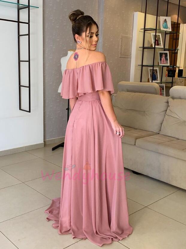 A Line Off the Shoulder Blush Pink Long Formal Dress