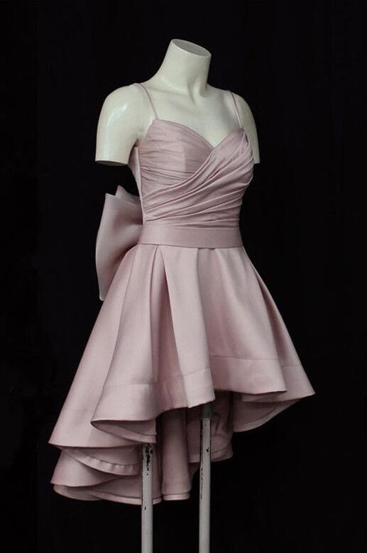 High Low Style Satin Short Prom Homecoming Dresses With Bow Back