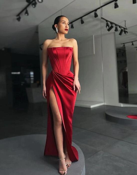Unique Strapless Wine Red Long Senior Prom Dresses