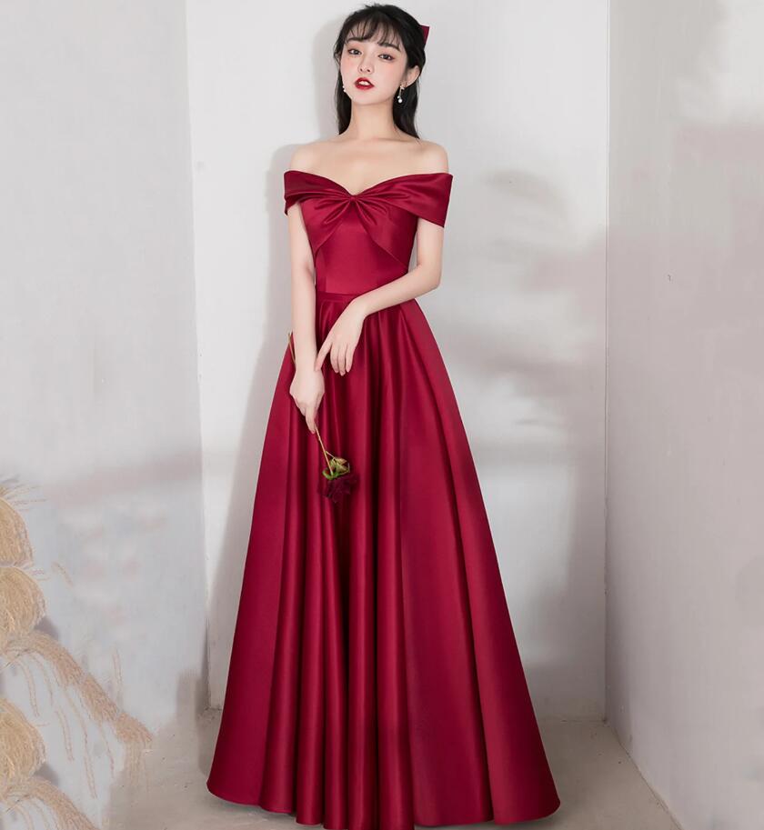 A Line Burgundy Stain Prom Dresses