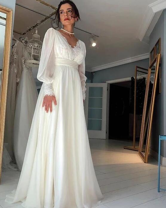 Beautiful A Line Chic Lace Chiffon Prom Dresses
