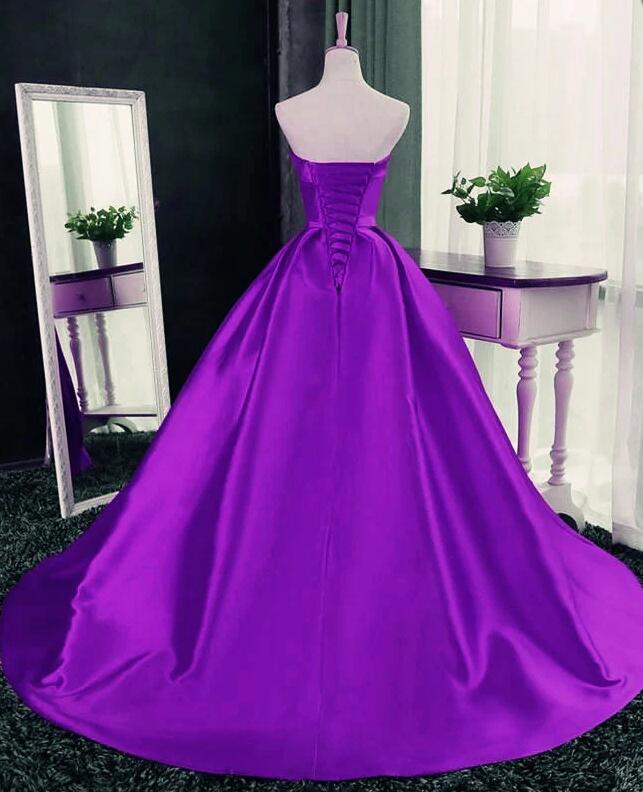 Mermaid Purple Satin Long Prom Dress With Lace-up