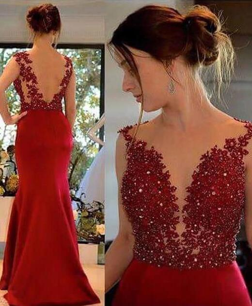 Simple Floor Length Red Evening Prom Dresses