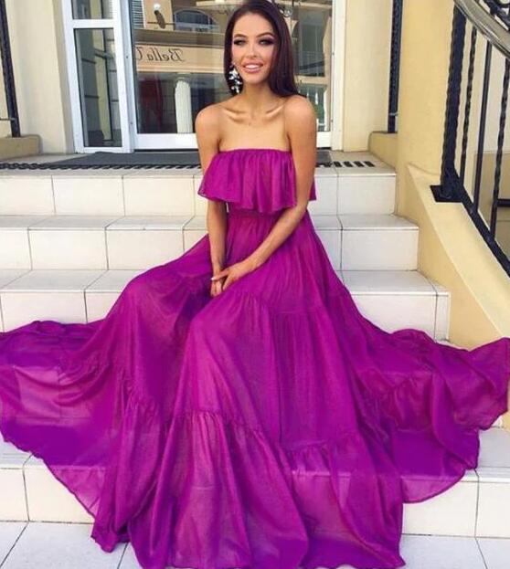 Fashion Strapless Hot Pink Chiffon Prom Dress