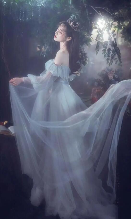 Off the Shoulder Vintage Grey Tulle Prom Evening Dresses