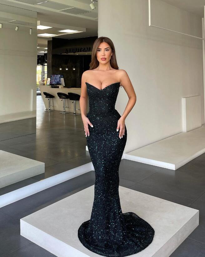 Mermaid Sparkly Black Sequins Long Prom Dresses