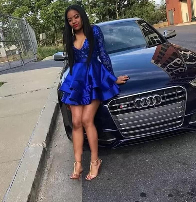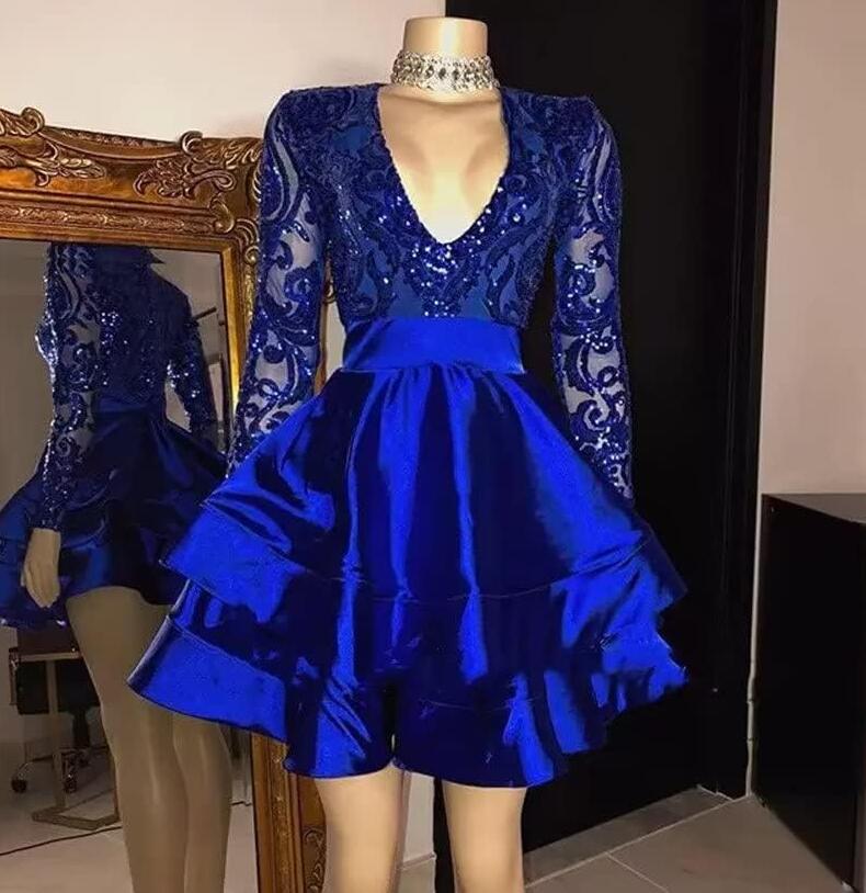 Sexy Long Sleeve Royal Blue Sequin Short Prom Dresses