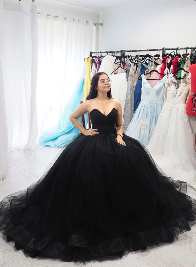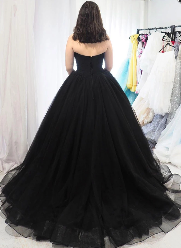 Charming A Line Sweetheart Black Tulle Long Evening Dresses