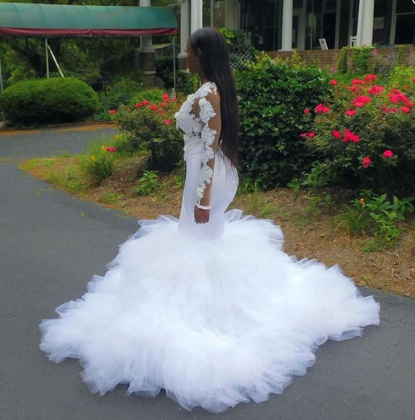 Deep V Neck 3D Mermaid Long Sleeves Plus Size Bridal Dresses Lace Appliques