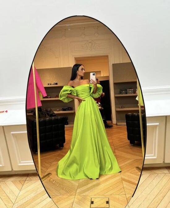 Sexy Off Shoulder Green Prom Dress With Puff Sleeve