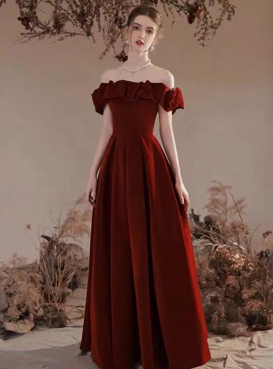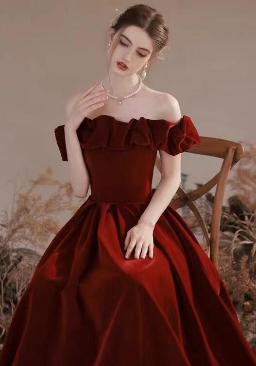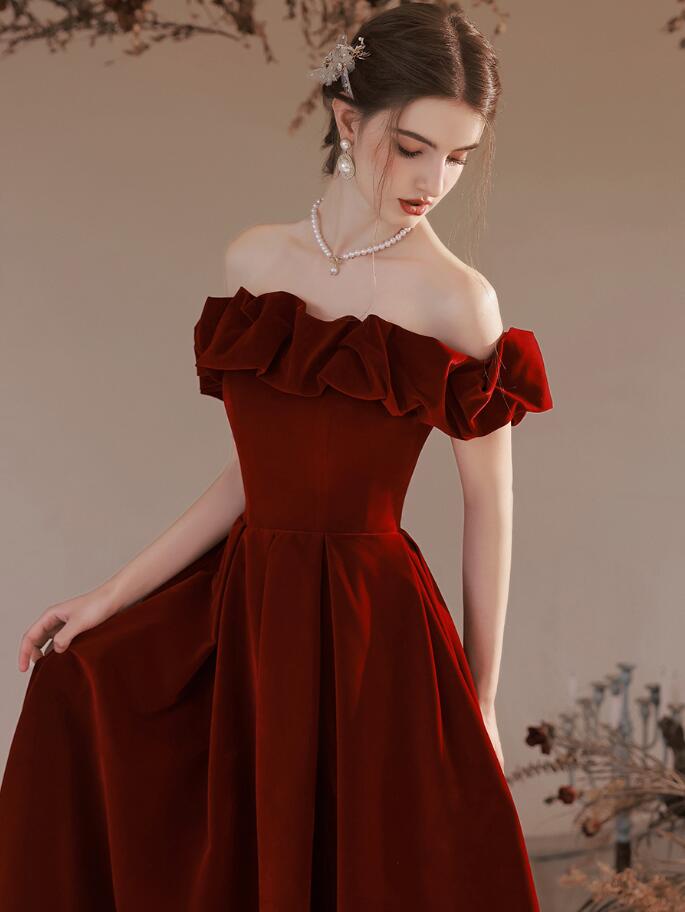 Elegant Off Shoulder Burgundy Velvet Long Party Dresses
