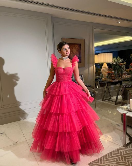 Fashion Hot Pink A-line Long Prom Dresses