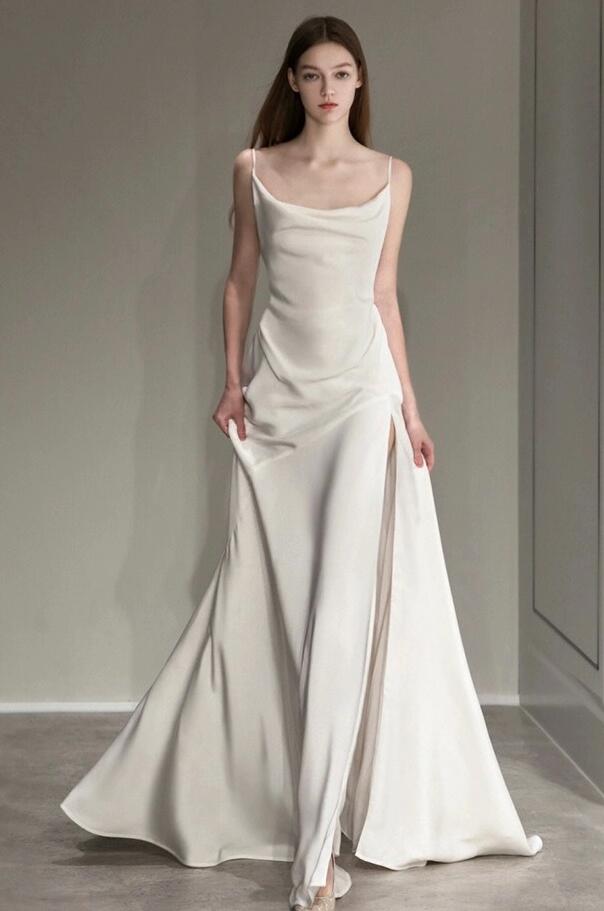 Spaghetti Strap V Back Stain Bridal Dresses