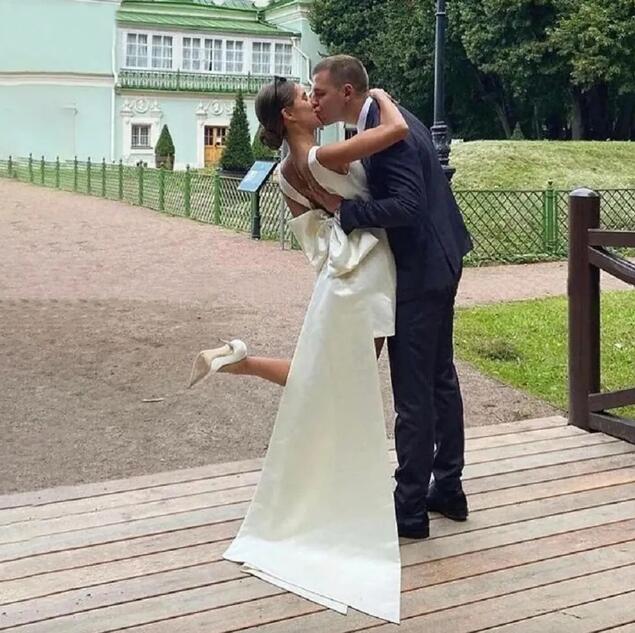 Simple Satin Little Mini Wedding Dress With Detachable Train Big Bow