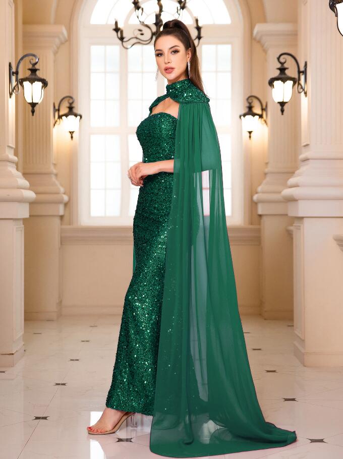 Luxury Strapless Flying Sleeve Halter Sequined Backless Prom Dresses for Women