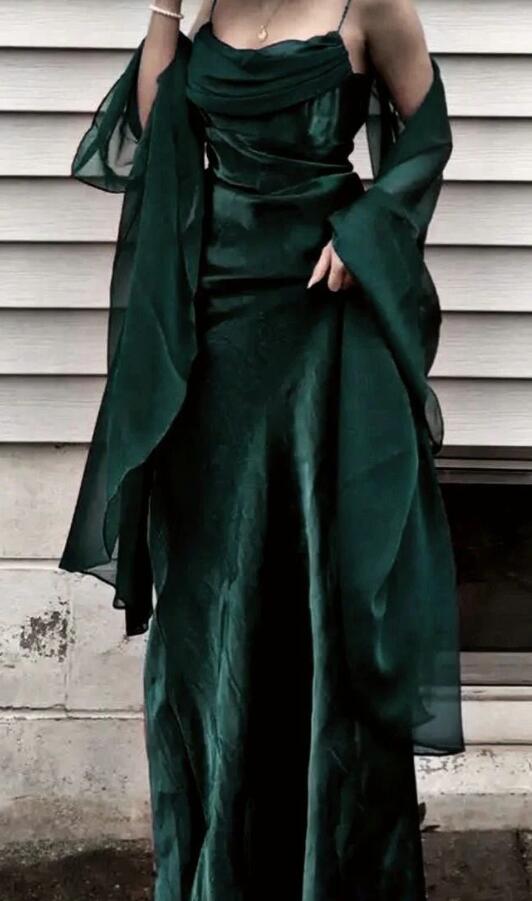 Simple A Line Green Long Prom Dresses, Evening Gowns