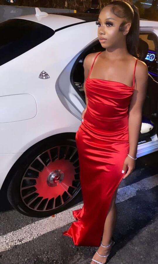 Sexy High Slit Satin Formal Dresses