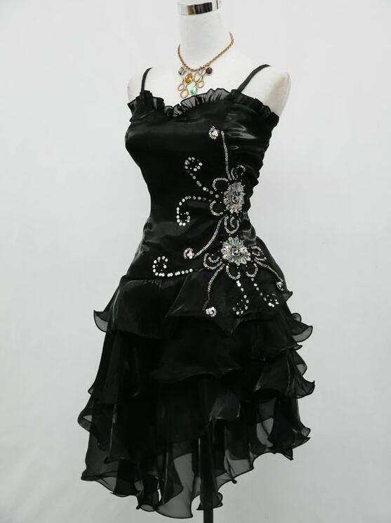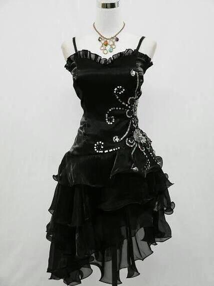 Charming Black Chiffon Mini Prom Dresses With Beaded