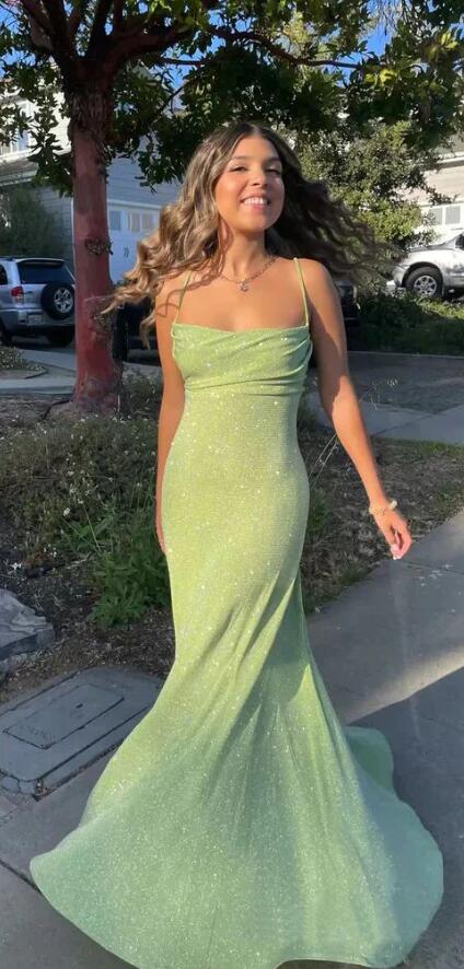 Spaghetti Straps Sparkly Sexy Long Prom Dresses