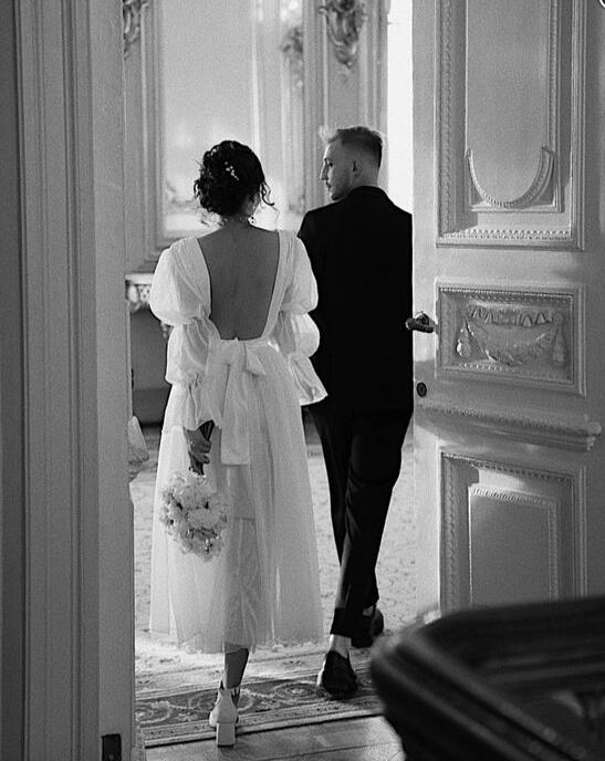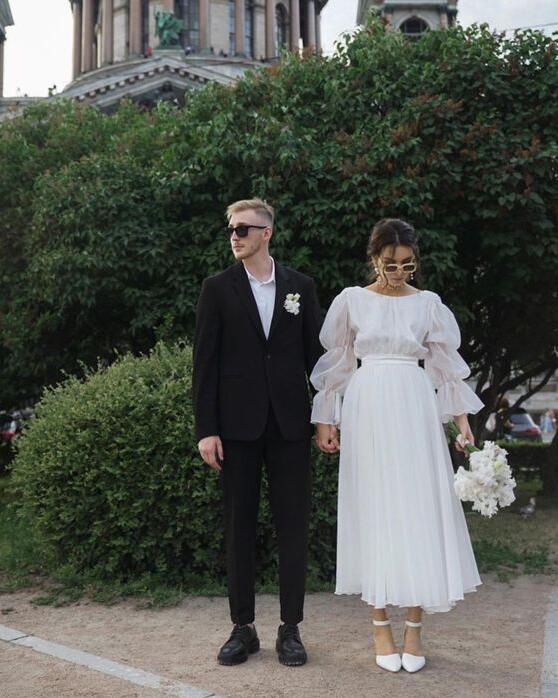 Cute Tea-length Beach Boho Long Sleeves Wedding Dresses