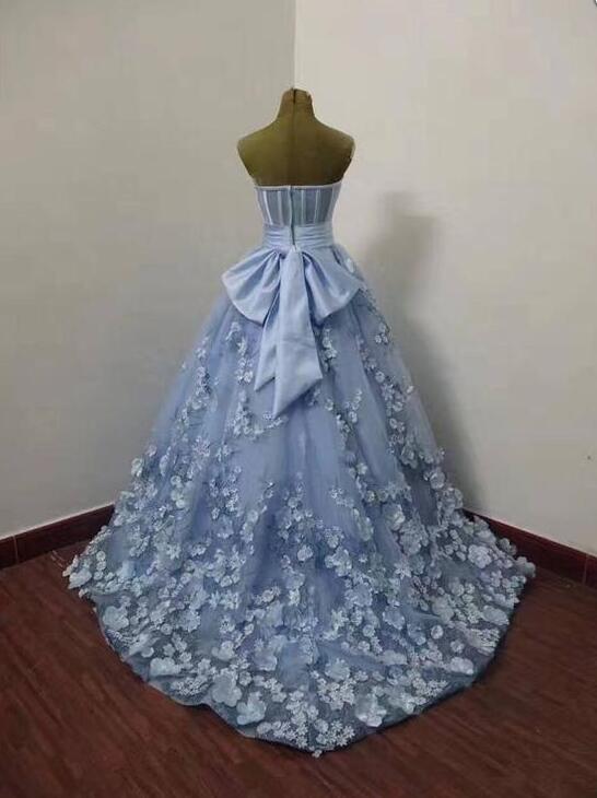 Sweetheart Blue Tulle Long Party Dress with Flowers