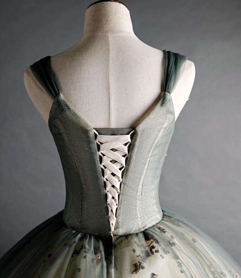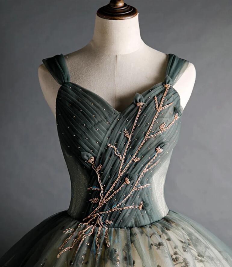 Enchanted A Line V Neck Forest Embellished Tulle Ball Gown Prom Dresses