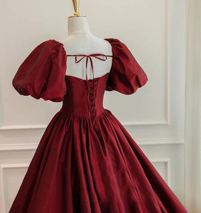 Floor Length Wine Red Short Sleeves Long Ball Gown Evening Dresses