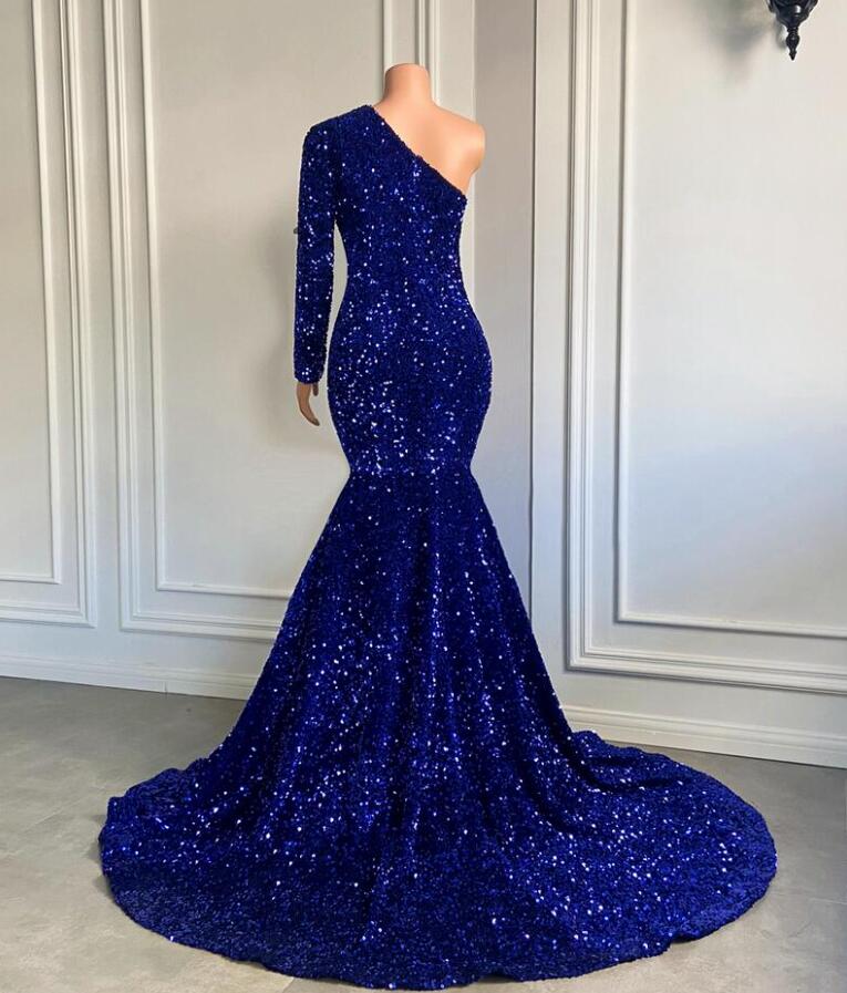 Mermaid One Shoulder Royal Blue Sequin Sparkly Prom Dresses