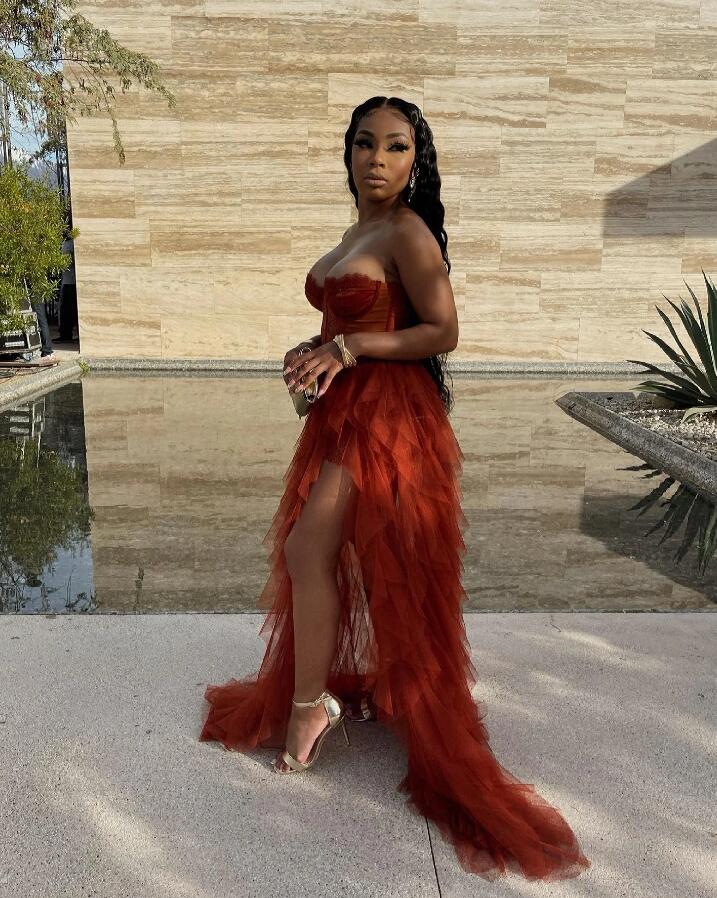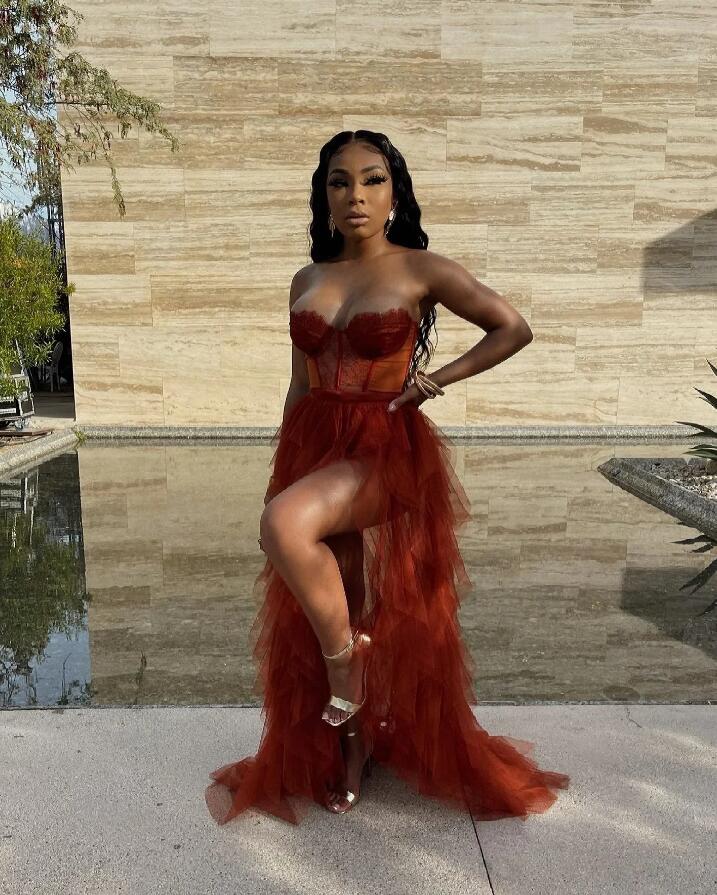 Sexy Sleeveless High Slit Lace Tulle Ruffle Evening Dresses
