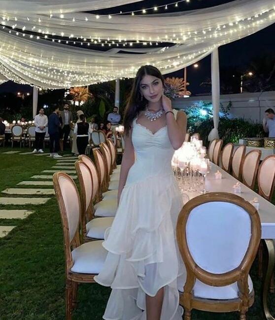 Charming Modest A-line Long V Neck Evening Dress Formal Gowns