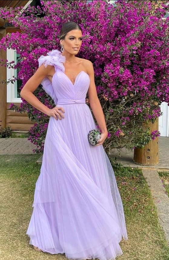 Floor Length Light Purple A-line Tulle Prom Dresses