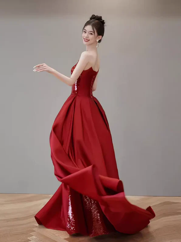 Mermaid Off Shoulder Wine Red Sequined A-line Long Slit Evening Dresses