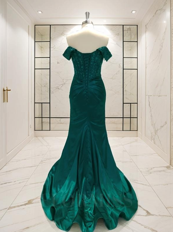 Sheath Off Shoulder Sweep Train Elastic Satin Prom Dresses With Slit