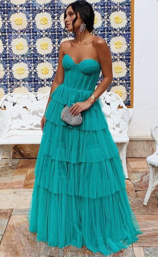Princess A-Line Layers Sweetheart Tulle Long Prom Dresses