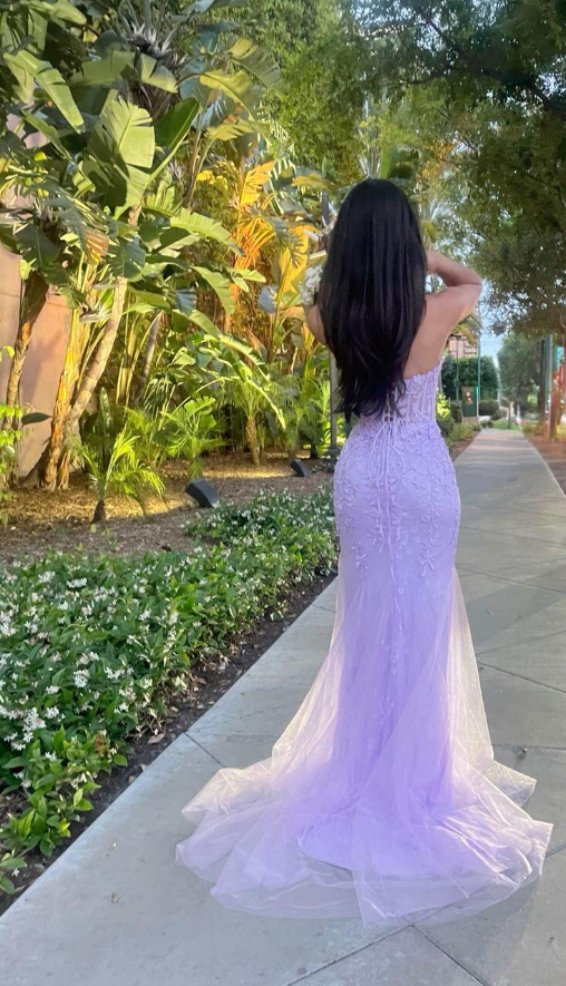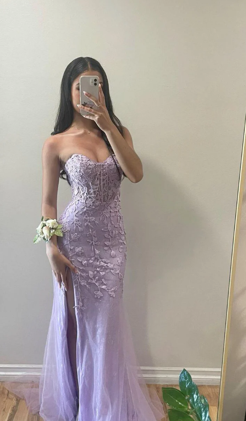 Charming Mermaid Lilac Sweetheart Appliques Tulle Prom Dresses