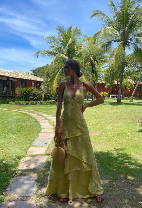 Sexy V Neck A Line Green Party Dresses
