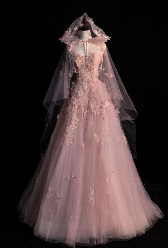 Spaghetti Straps Pink Tulle Prom Dresses for Teens