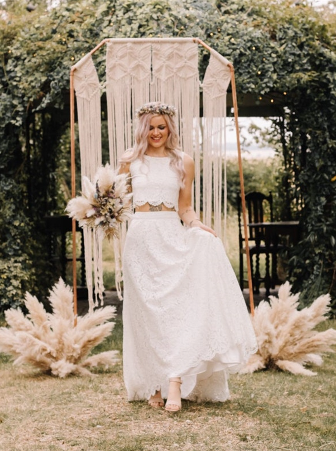 A Line Two Pieces Bohemian Wedding Dresses With Lace Appliques