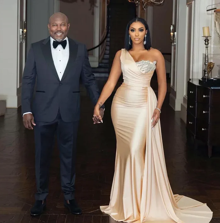 One Shoulder Sleeveless Champagne Mermaid Satin Prom Dresses