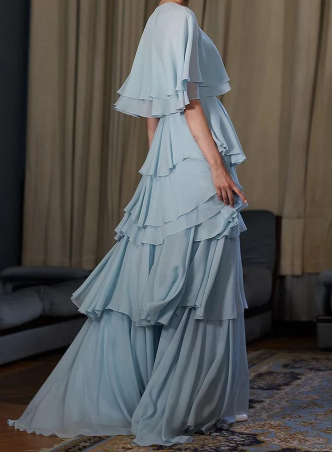 Vintage Light Blue A Line Chiffon Prom Dresses