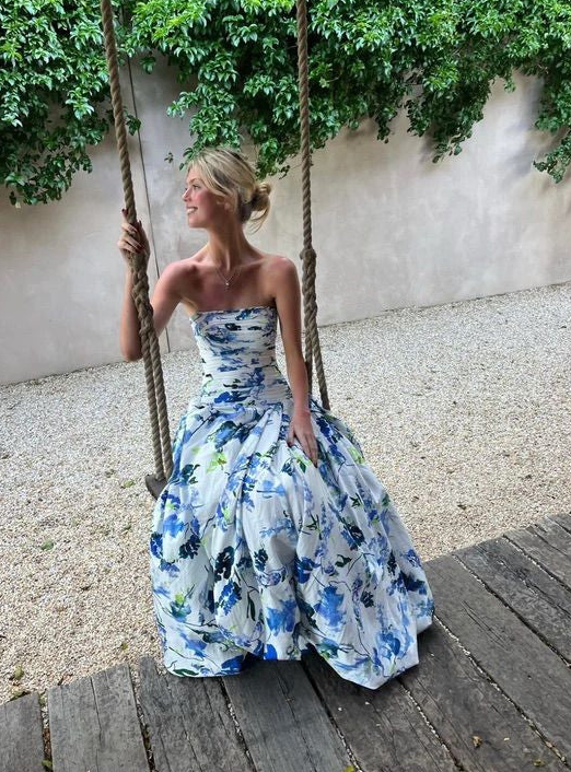 Strapless Print Floral Long Prom Dresses With Split