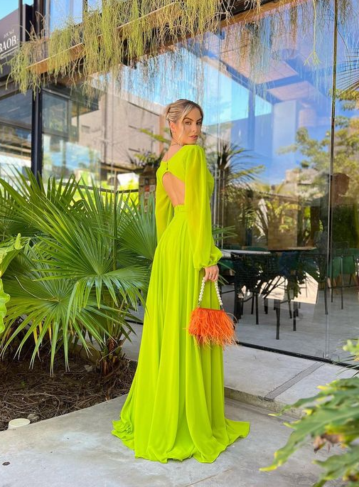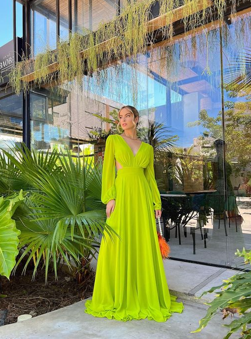 A-Line Elegant V Neck Chiffon Green Evening Dresses