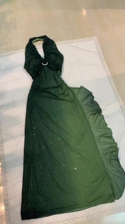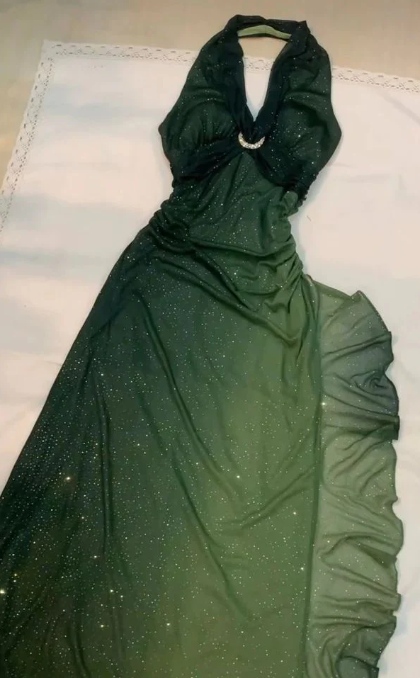 Halter Ombre Green Chiffon Backless Prom Dresses